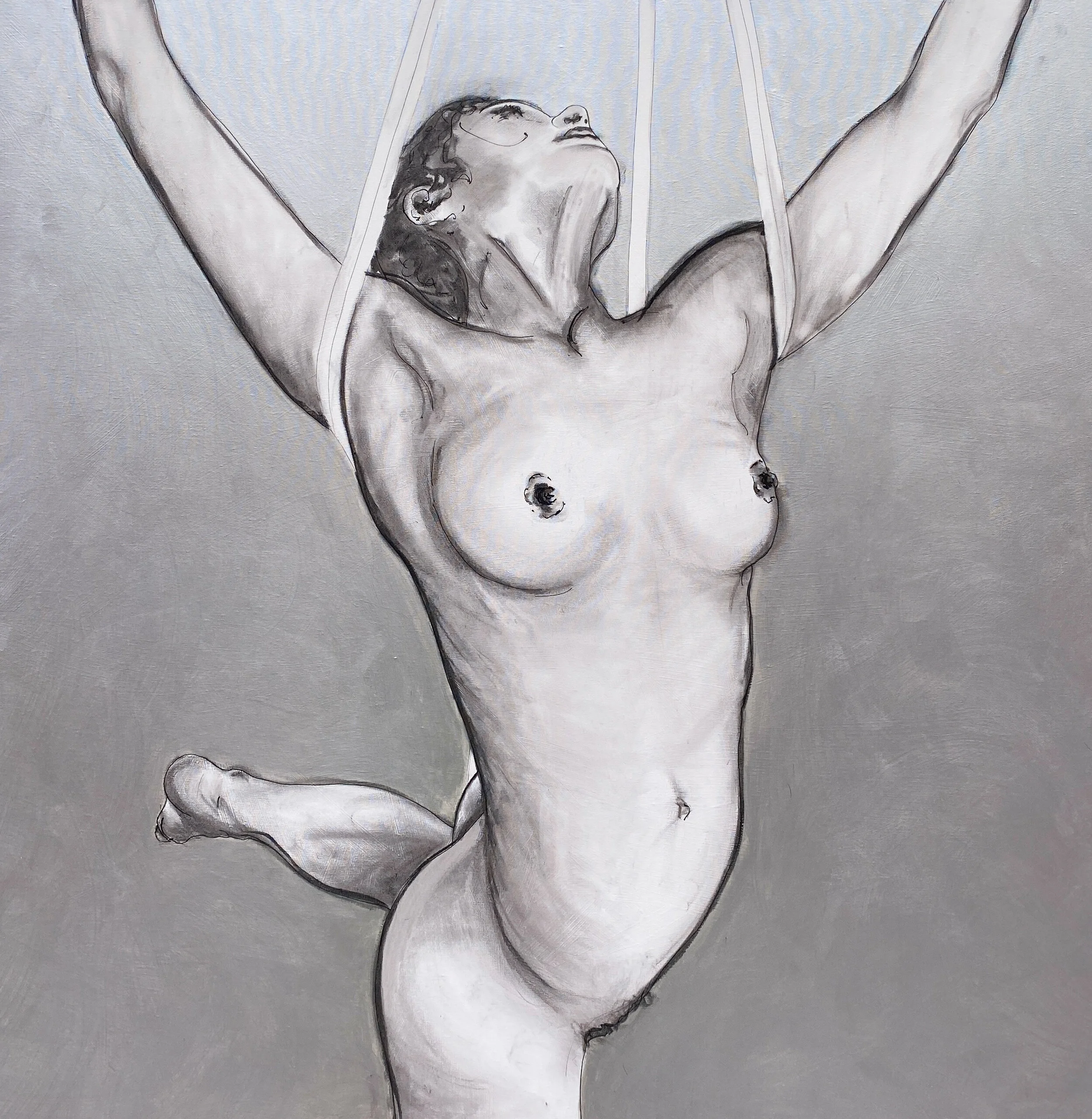 Silver nudes on canvas fabric 100 x 100 cm / 4 cm spine thickness.